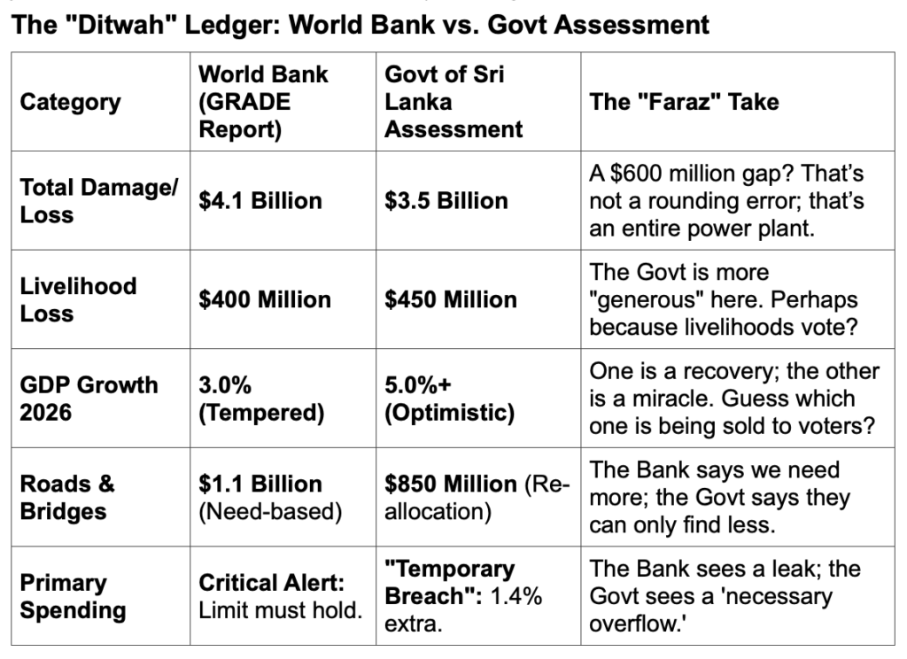 Let’s take a cold, hard look at the ledger. We have the World Bank’s GRADE report on one side and the Government of Sri Lanka’s Ministry of Finance assessment on the other.