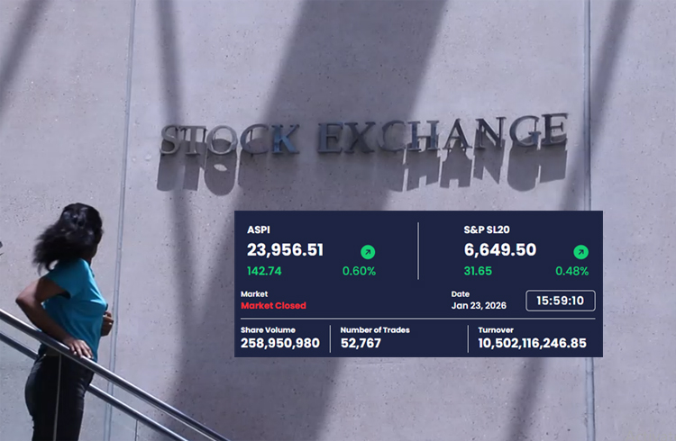 The Colombo Stock Exchange (CSE) achieved a significant milestone today as the All Share Price Index (ASPI) reached the 24,000 mark during intraday trading, marking a historic first. The benchmark index concluded the session at 23,956.51 points, representing an increase of 142.74 points from the previous day, highlighting robust market momentum.