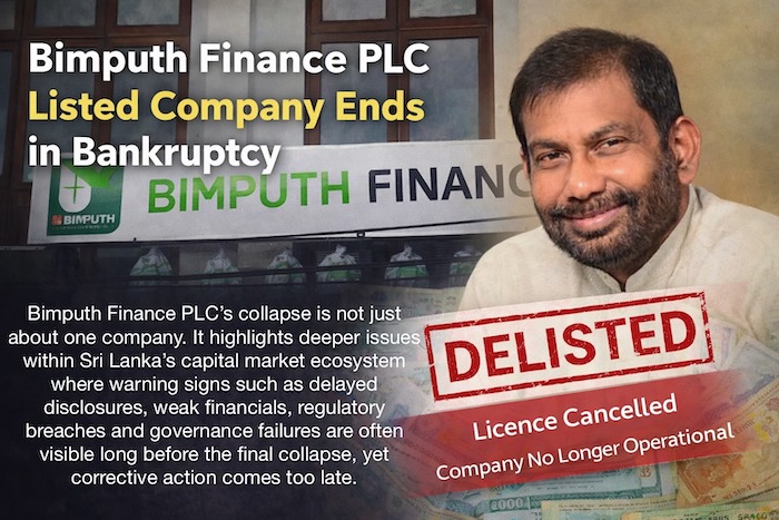 Bimputh Finance PLC’s collapse is not just about one company. It highlights deeper issues within Sri Lanka’s capital market ecosystem — where warning signs such as delayed disclosures, weak financials, regulatory breaches and governance failures are often visible long before the final collapse, yet corrective action comes too late. A stock market listing is not a guarantee of financial health, and regulation without enforcement is meaningless.