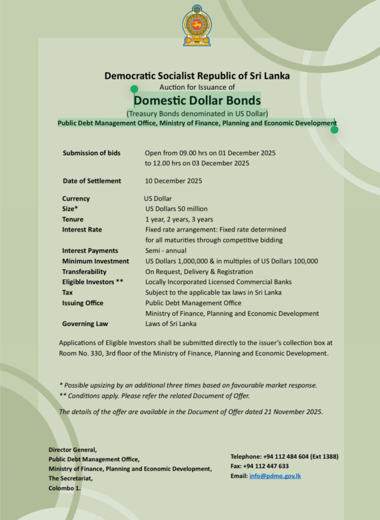 Officials and economists say the new issuance is part of a broader strategy to strengthen Sri Lanka’s foreign currency reserves ahead of substantial sovereign repayment obligations due in 2028. By raising funds domestically in dollars, the Government aims to reduce reliance on external commercial borrowing and enhance fiscal sustainability. Market expectations are that more dollar bond auctions will follow in the coming year, which could continue to absorb liquidity away from the stock market.