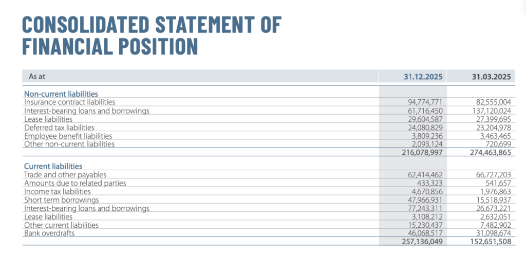 While JKH’s operational performance indicates a recovery and growth trajectory, the composition of its liabilities — particularly the large portion of short-term borrowings and overdrafts — highlights a growing dependence on short-term funding lines to support operations and expansion.