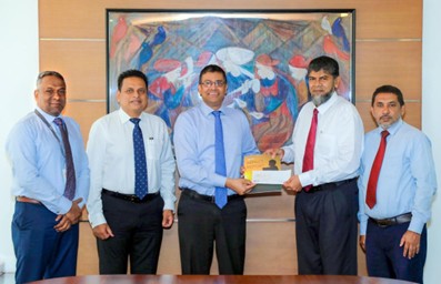 Image caption: Sameer Mohamed – Head of Islamic Banking Unit, Ranil Dissanayake – Chief Operating Officer, Ramesh Jayasekara – Director/CEO of Seylan Bank, handing over the contribution to Azad Zaheed – Head of OrphanCare Trust & Marshad Barry – Deputy Head of OrphanCare Trust.