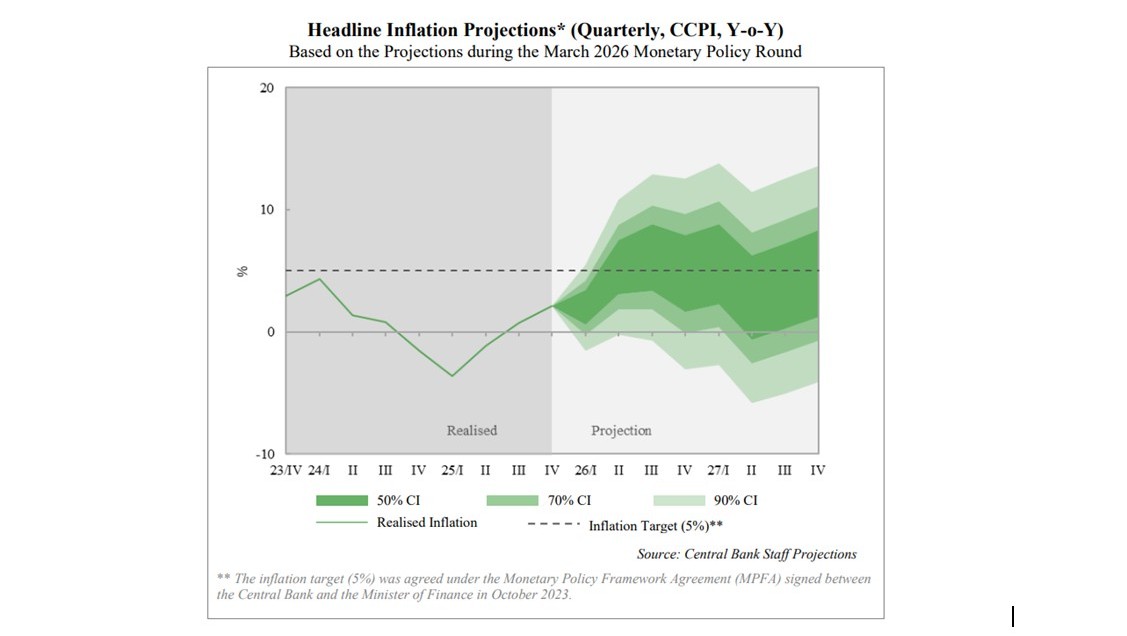 The Central Bank further stated, “The current low level of inflation, at 1.6% (year-on-year) in February 2026, relative to the target of 5%, provides sufficient space to accommodate the impact of higher energy prices and their spillovers on inflation.”