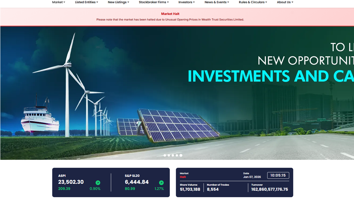 FINANCIAL CHRONICLE – The Colombo Stock Exchange (CSE) of Sri Lanka announced the cancellation of all trades on Wednesday due to an erroneous transaction involving shares of Wealth Trust Securities, which made its market debut that day.