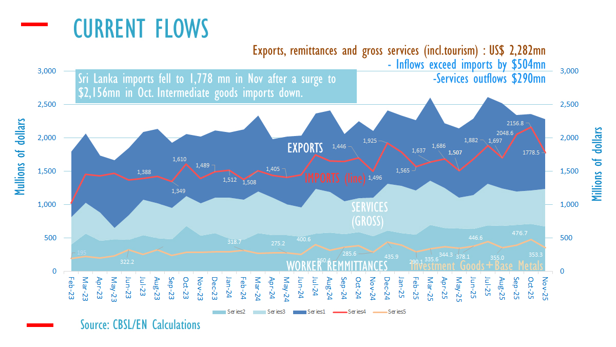 In November 2025, Sri Lanka experienced a positive foreign exchange balance, with inflows from exports, remittances, and gross services surpassing imports by 504 million US dollars, according to official data.