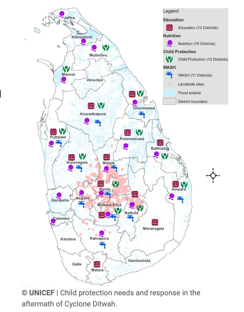 Nearly a month after Cyclone Ditwah tore across Sri Lanka, more than a million people – including over half a million children – remain in urgent need of humanitarian assistance, as floods, landslides and renewed rainfall continue to compound one of the country’s worst disasters in decades.