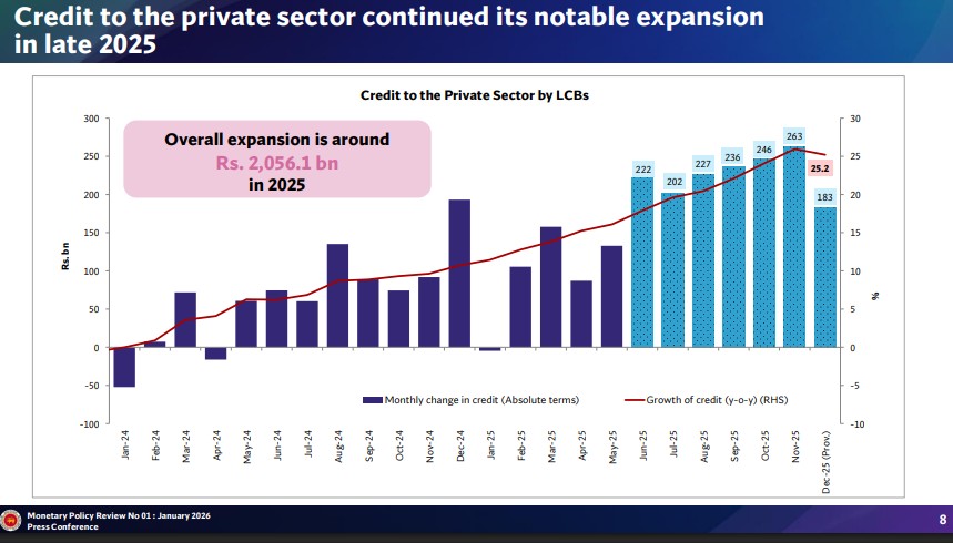 While Jegajeevan did not specify the reasons for this slowdown, analysts suggest that it may be attributed to reduced economic activities in December following the disaster in late November. She also noted that the improvement in demand conditions and a substantial rise in vehicle imports contributed to strong private credit demand in the latter half of 2025, with a noticeable deceleration in December.
