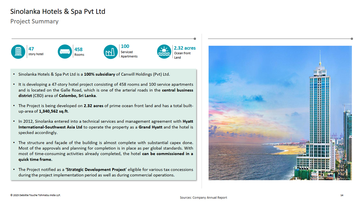 Established in December 2011, Canwill Holdings was created to invest in the tourism and hospitality sector. Its shareholders include the Sri Lanka Insurance Corporation, Employees’ Provident Fund, and Litro Gas Lanka. Notably, the company owns the Grand Hyatt building in Colombo.