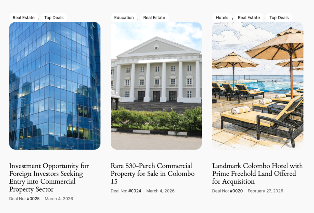 Together, these opportunities highlight the diversity and resilience of Sri Lanka’s property sector, spanning urban commercial real estate, large-scale development land, hospitality assets, and tourism-driven resort developments. As Sri Lanka moves further into economic recovery and tourism continues to rebound, the real estate sector is poised to remain one of the country’s most compelling investment frontiers.