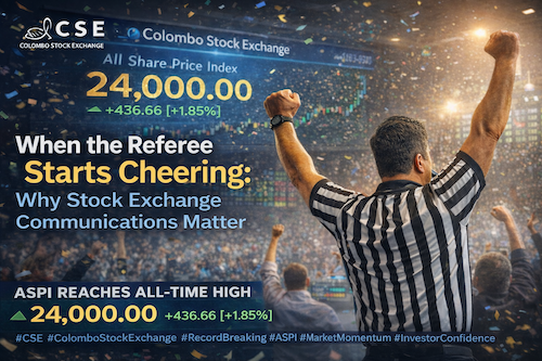 The Colombo Stock Exchange (CSE) recently marked a significant milestone when the All Share Price Index (ASPI) reached an all-time high. The achievement itself is factual and undisputed. However, the manner in which such milestones are communicated by a stock exchange — particularly through official channels such as social media — raises an important and often overlooked question: where should a market operator draw the line between information and promotion?